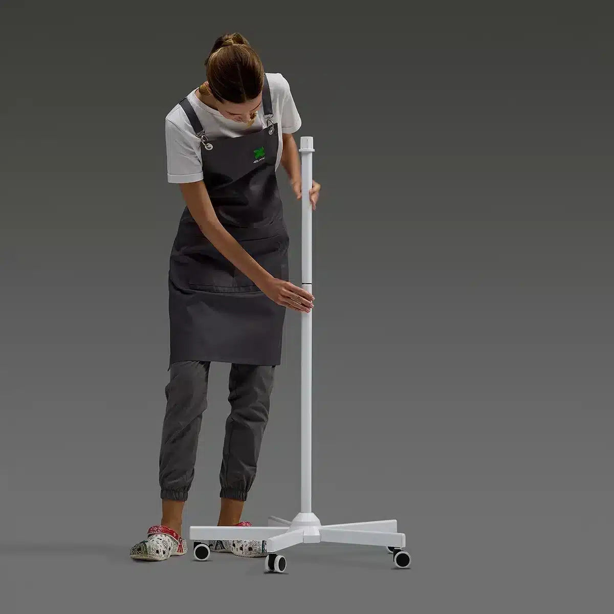 Soporte de mesa, brazo articulado, soporte rodante: acero al carbono con elementos de plástico ABS