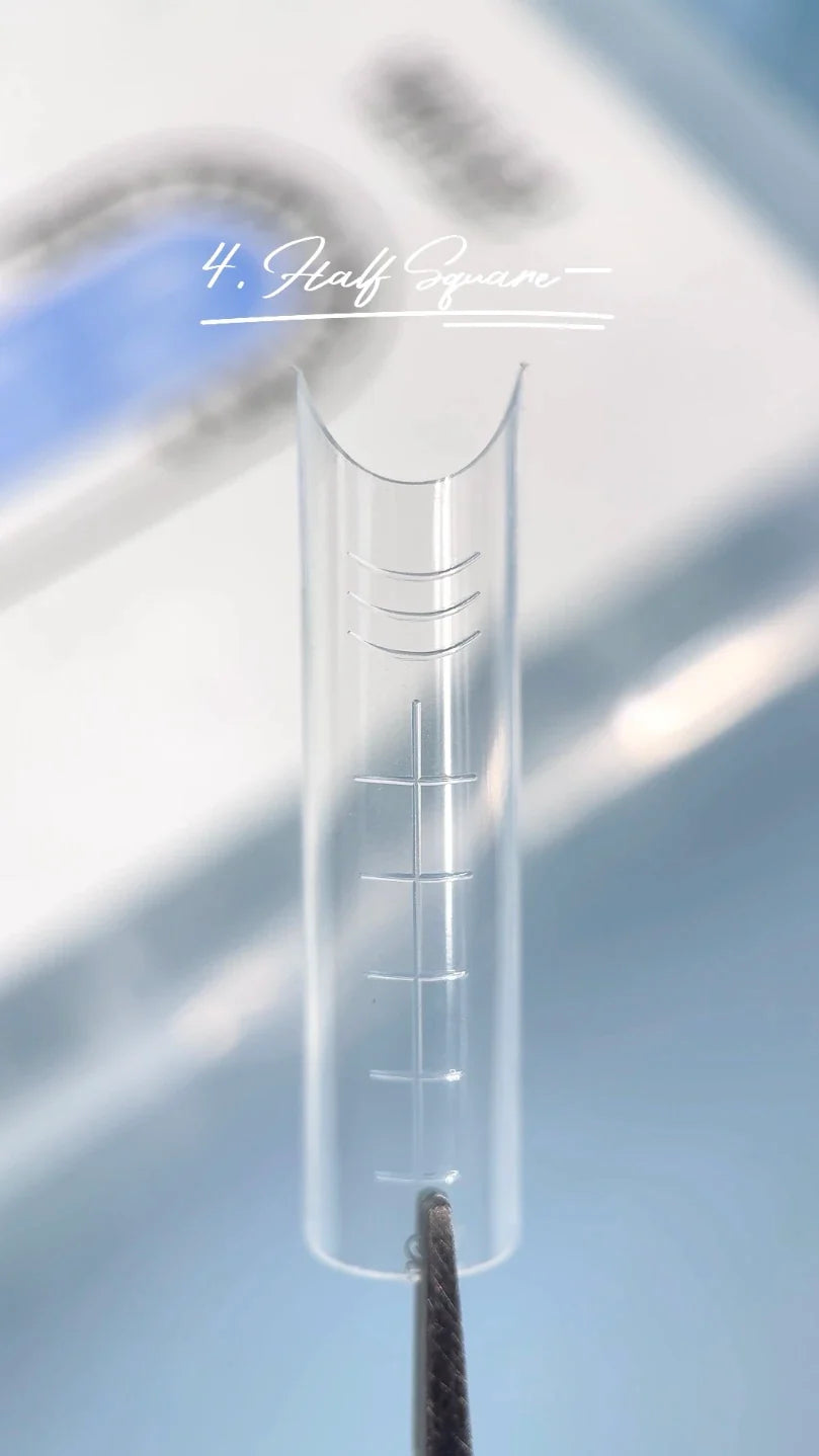 1. Curve Square — плавно зігнутий квадрат. 2. Stiletto — елегантний загострений стилет. 3. Square — класичний квадрат. 4. Half Square — укорочений квадрат. 5. Maxi Ballerina — подовжена балерина. 6. Maxi Arch Square — квадрат із вираженою аркою.