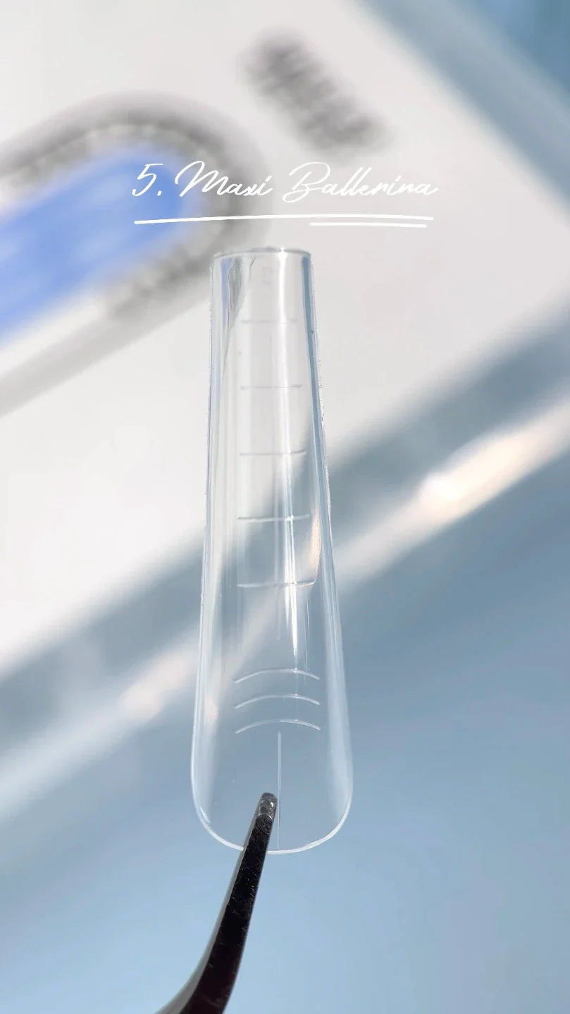Особливості: • поєднує в собі плавність мигдалю та чіткість ліній форми “балерина” • ідеально підходить для клієнтів, які надають перевагу стильним довгим та середнім формам • повздовжня арка вигнута з плавним апексом ближче до центру • бічні стінки прямі злегка завужені до вільного краю , що відповідає заданій формі Балерині та виглядає дуже гарно і гармонічно • поперечна арка в найвищій точці 60% • апекс зміщений, що забезпечує баланс і підвищену стійкість до механічних навантажень • форми пружні, добре тримають форму та знімаються легко після полімеризації, вони не гнуться при підтисканні архітектури пінцетом або спеціальними тонкогубцями • апекс з плавним підйомом, дає змогу ідеально зробити відпечатку в зоні кутикули та отримати ідеальну архітектуру на вигляді збоку