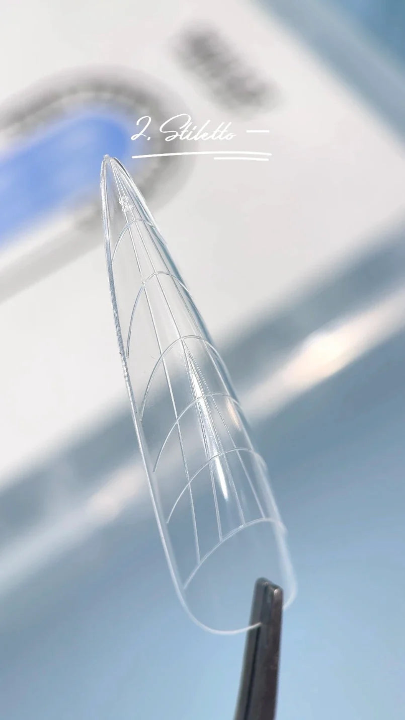 Підходить : • на майже усі типи нігтів • стилет/довгий мигдаль/балерина • для моделювання елегантних і видовжених форм нігтів, що акцентують на довжині та архітектурі нігтя • для не довгого квадрату з плоскою або стандартною нігтьовою пластиною • також форми можуть підійти на трампліни для дуже короткого квадрату або овалу, за умови якщо нігті не надто арочні