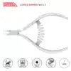 [Alicates] Son una de las principales herramientas utilizadas para manicura y pedicura. El diseño único de Nippon Nippers con un bajo nivel de inclinación de la hoja de corte (“talón” bajo) proporciona un nuevo nivel de ergonomía de la herramienta. Durante el trabajo, la carga en el área de los hombros se reduce notablemente y la fatiga del maestro se reduce significativamente. La junta está diseñada para un uso prolongado de alicates. El remache de mayor diámetro tiene un asiento debidamente.