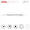 Este modelo presenta dos herramientas en uno: por un lado, cuenta con una espátula de hombro ancho, perfecta para empujar la cutícula y retirarla de manera eficiente, ya sea con tijeras o alicates. Por otro lado, tiene una pica, ideal para limpiar la uña del pterigión, así como para tratar la superficie de los rodillos laterales y el interior del borde libre de la uña.