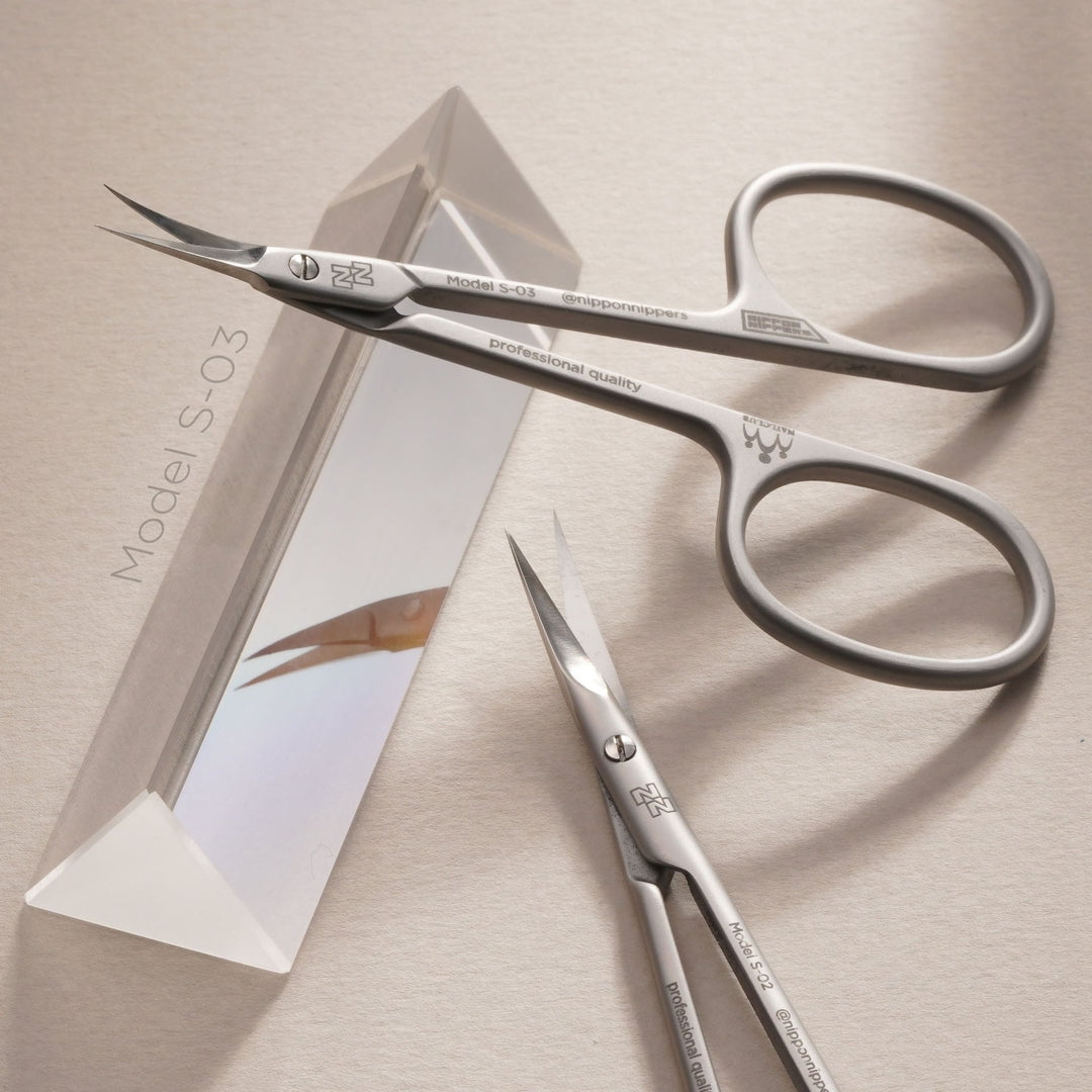 Las tijeras modelo S-03 son una herramienta profesional de alta precisión, diseñada para ofrecer comodidad y control en el trabajo de manicura. Con una longitud de 90 mm, este modelo destaca por sus grandes anillos ovalados, que permiten un agarre cómodo, aunque con un mango más corto y una hoja más pequeña en comparación con el modelo S-01, lo que lo hace más versátil y fácil de manejar.
